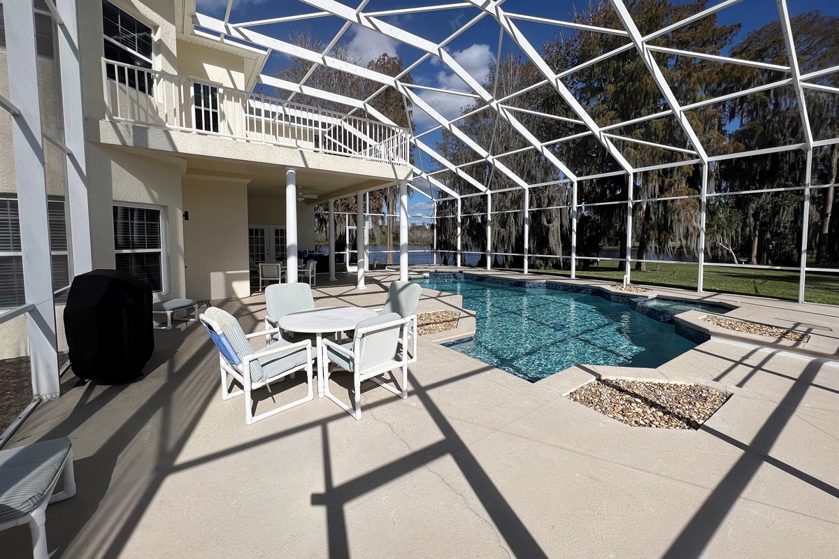 • Large South-Facing Screened Pool Area: Newly renovated 35'x18' pool and hot tub with loungers, seating, and a gas BBQ.