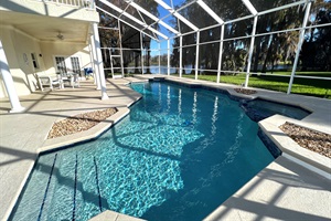 • Large-scale south-facing screened pool area Features a 35'x18' south-facing screened pool and hot tub with loungers and a BBQ grill for alfresco dining.