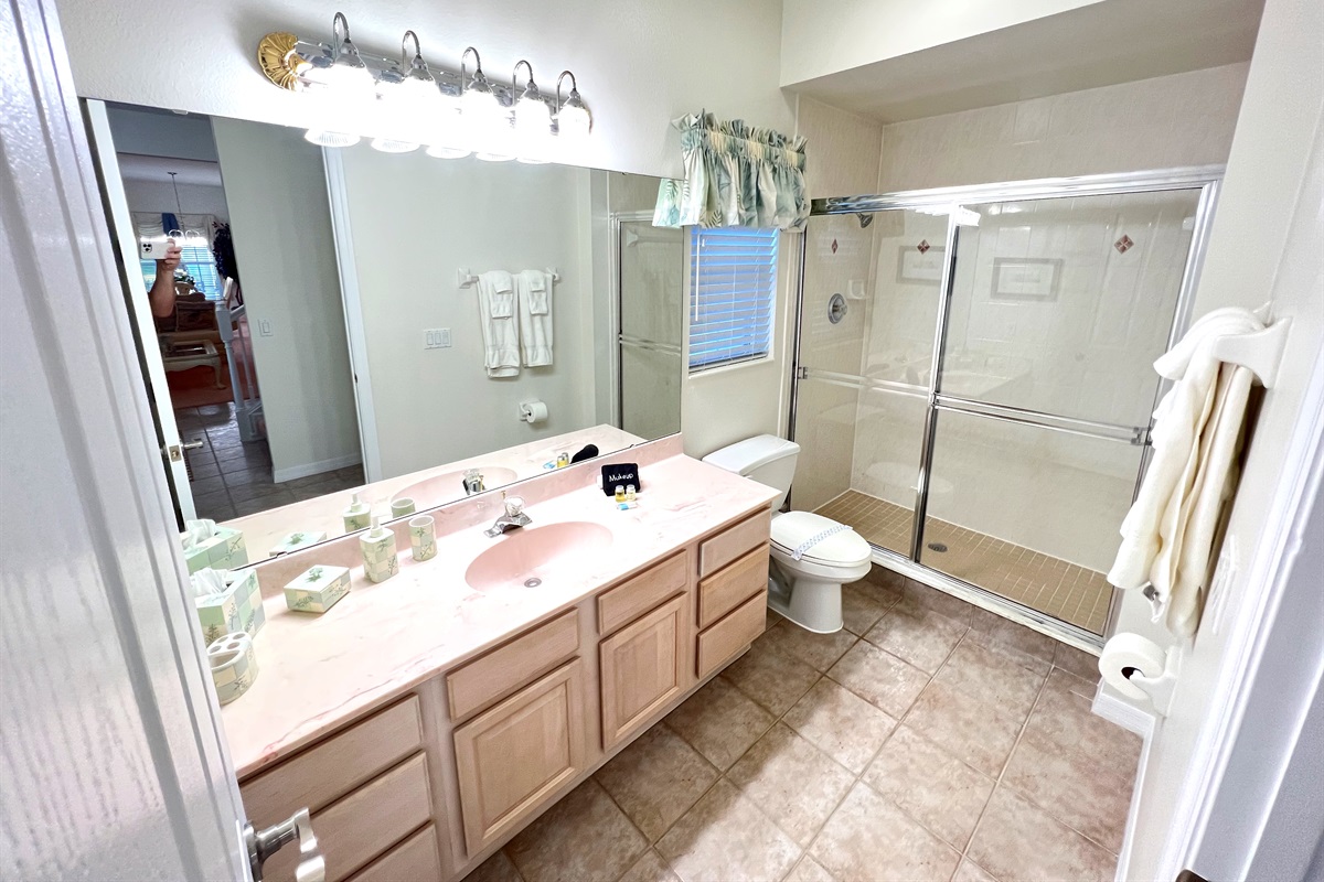Bathroom (Downstairs): Shared bathroom with a walk-in shower for easy access.